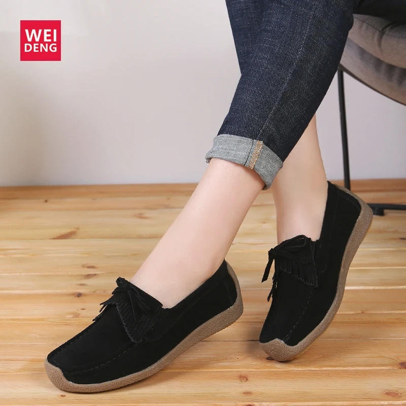 Related Product for WeiDeng Genuine Leather Women Shoes Fur Insole Suede Flat Loafer Slip On Casual Overseas Warehouse